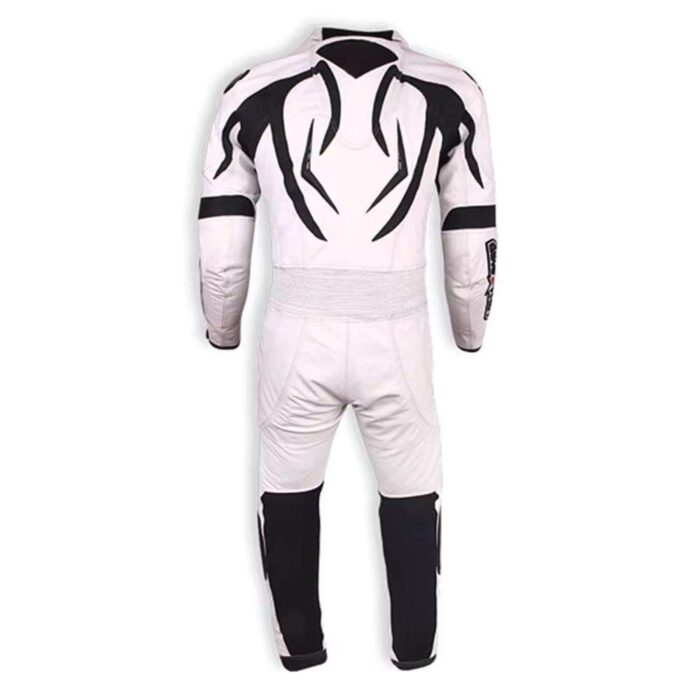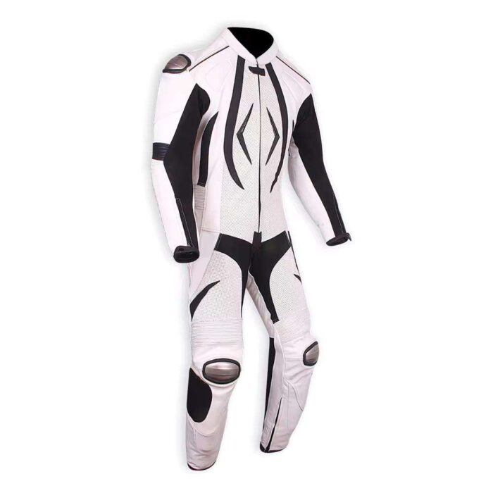 Black & White Men’s Leather Motorcycle Racing Suits – Full Body Biker Gear with Track & Street Riding Outfit