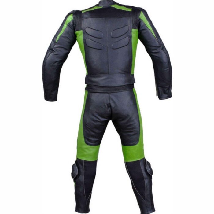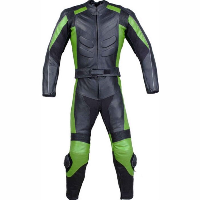 This Green & Black Leather Motorcycle Suit delivers ultimate protection and comfort for professional racers and road enthusiasts. Crafted from premium-grade cowhide leather, it offers high abrasion resistance while maintaining flexibility for unrestricted movement.