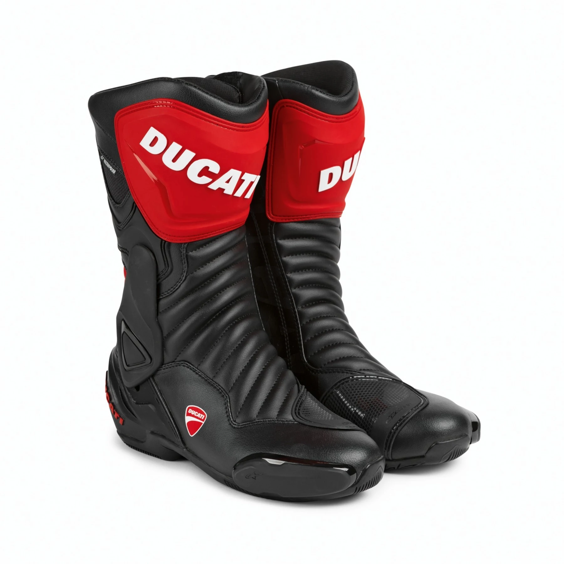 Discover the ultimate combination of protection, comfort, and performance with these men’s leather motorbike boots, designed for riders who demand more from every mile. Engineered with advanced materials and Italian precision, these boots deliver world-class durability, safety, and style — the perfect choice for passionate riders.Every detail of these premium motorcycle boots has been developed to enhance control and stability on the bike. The full-grain leather upper offers exceptional abrasion resistance, while reinforced ankle and heel panels provide reliable impact protection. A sturdy anti-slip sole ensures excellent grip on all surfaces, from wet roads to racetrack tarmac, giving you total confidence in every riding condition.Comfort meets performance with an ergonomic fit that supports natural movement and reduces fatigue on long rides. The interior features a breathable lining that keeps your feet cool and dry, while flexible accordion panels enhance mobility during gear changes and braking. A secure closure system ensures a snug fit that stays in place, even at high speeds.These men’s leather motorbike boots aren’t just made for protection — they’re built for riders who value design and performance in equal measure. The sleek, aerodynamic profile reflects Ducati’s legendary racing heritage, offering a bold statement of power and precision both on and off the bike.