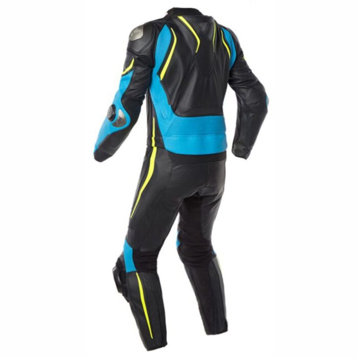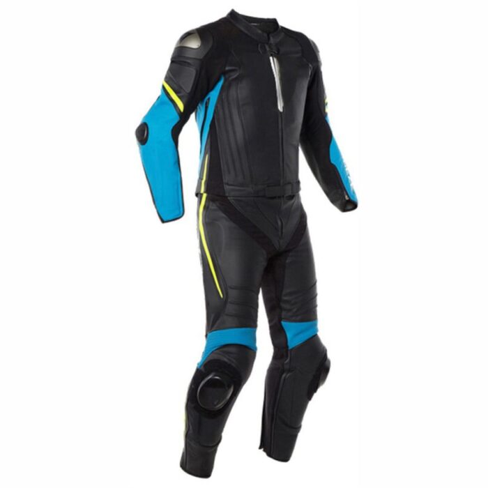 This Black & Blue Men’s Leather Motorcycle Racing Suit combines advanced protection with striking aesthetics. Designed for professional riders and enthusiasts alike, this full-body suit offers exceptional durability, flexibility, and comfort on the road or track. Constructed from high-grade cowhide leather with internal armor, it ensures superior impact resistance while maintaining a lightweight feel.