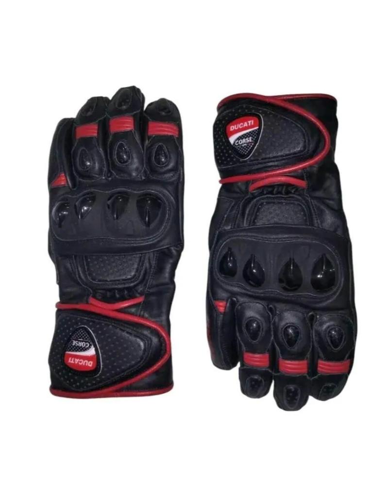 Experience superior hand protection and riding performance with these Premium Racing Motorbike Leather Gloves, engineered for riders who demand durability, control, and high-impact safety. Made from top-quality leather, these gloves offer exceptional abrasion resistance and long-lasting strength, ideal for both high-speed riding and daily use.The advanced reinforced knuckle armor enhances impact resistance, while additional padding on the palm and fingers reduces vibration and provides stronger handlebar control. The perforated and breathable panels help maintain airflow, keeping your hands cool and comfortable during long-distance or summer rides.The secure adjustable wrist strap ensures a snug, stable fit, preventing slippage during aggressive riding. Flexible finger joints and pre-curved ergonomics allow natural movement for improved throttle feel and braking accuracy. With stylish red-and-black accents and sports-inspired protection panels, these gloves stand out while delivering professional riding performance.