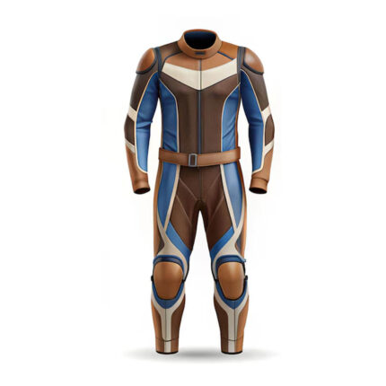Premium Blue & Brown Leather Motorbike Racing Suit – Full Body Protective Biker Gear with Armor Padding